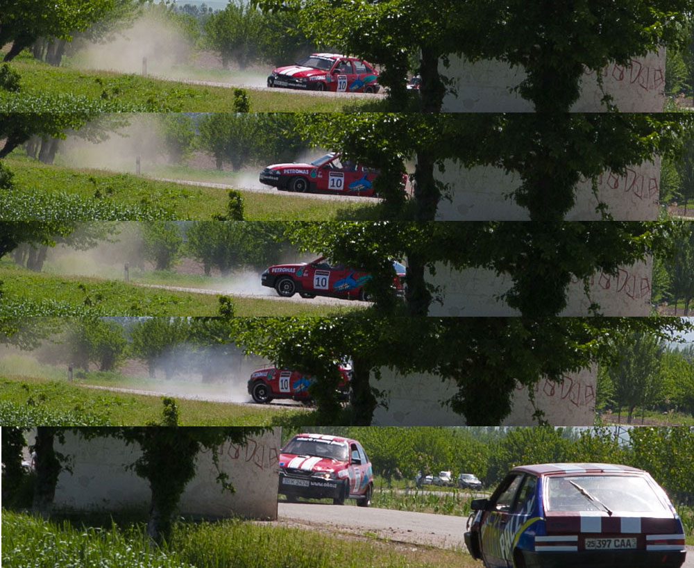 Один из коварных участков, экипаж №71 (Ахроркулов Фуркат – Хасанов Аскар) заносит и выбрасывает на остановку. Через несколько минут, на этом же повороте теряет управление экипаж №10, но благополучно выходит из ситуации.